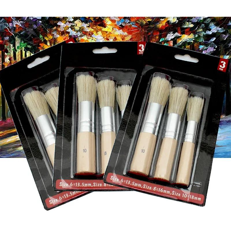 3 шт./6 шт./набор деревянных трафаретных кистей для рисования мелом, натуральная чистая свиная щетина, круглая акриловая масляная живопись, кисти для рисования мелом