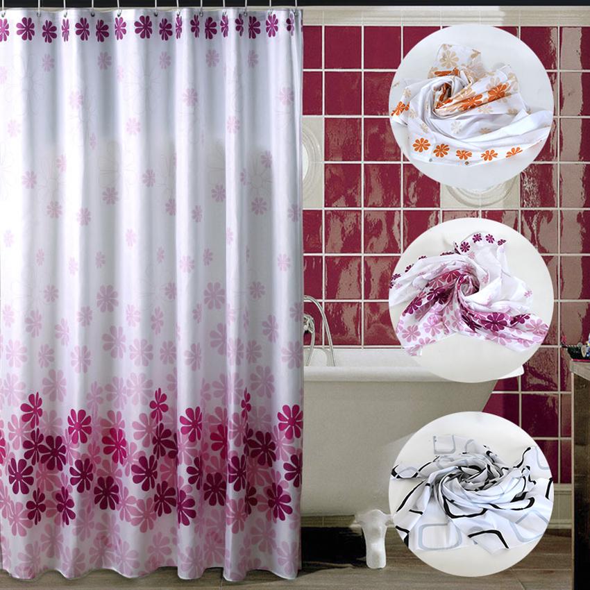 Цветочная занавеска для душа, занавески для ванной, водонепроницаемая полиэстеровая занавеска с цветами и 12 крючками 180 x 180 см 180 x 200 см