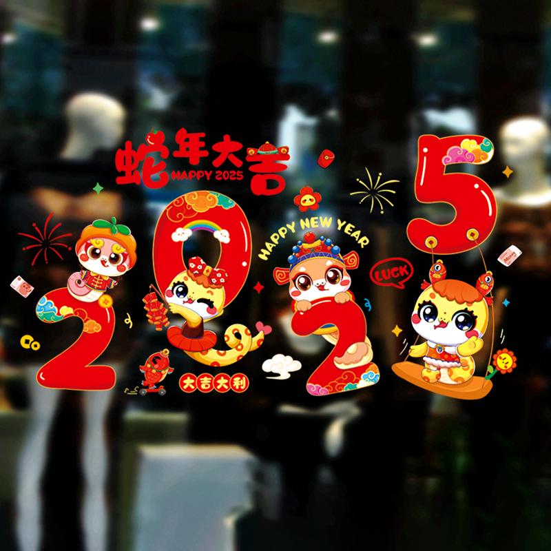 2025 Китайский Новый год Наклейка на окно Год Змеи Украшение для вечеринки Стеклянная дверь Наклейки на стену Весенний фестиваль Домашний декор