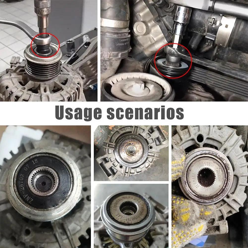 Инструмент для снятия шкива свободного хода муфты генератора автомобиля с 33-зубчатым клиновым ремнем, черные автомобильные аксессуары