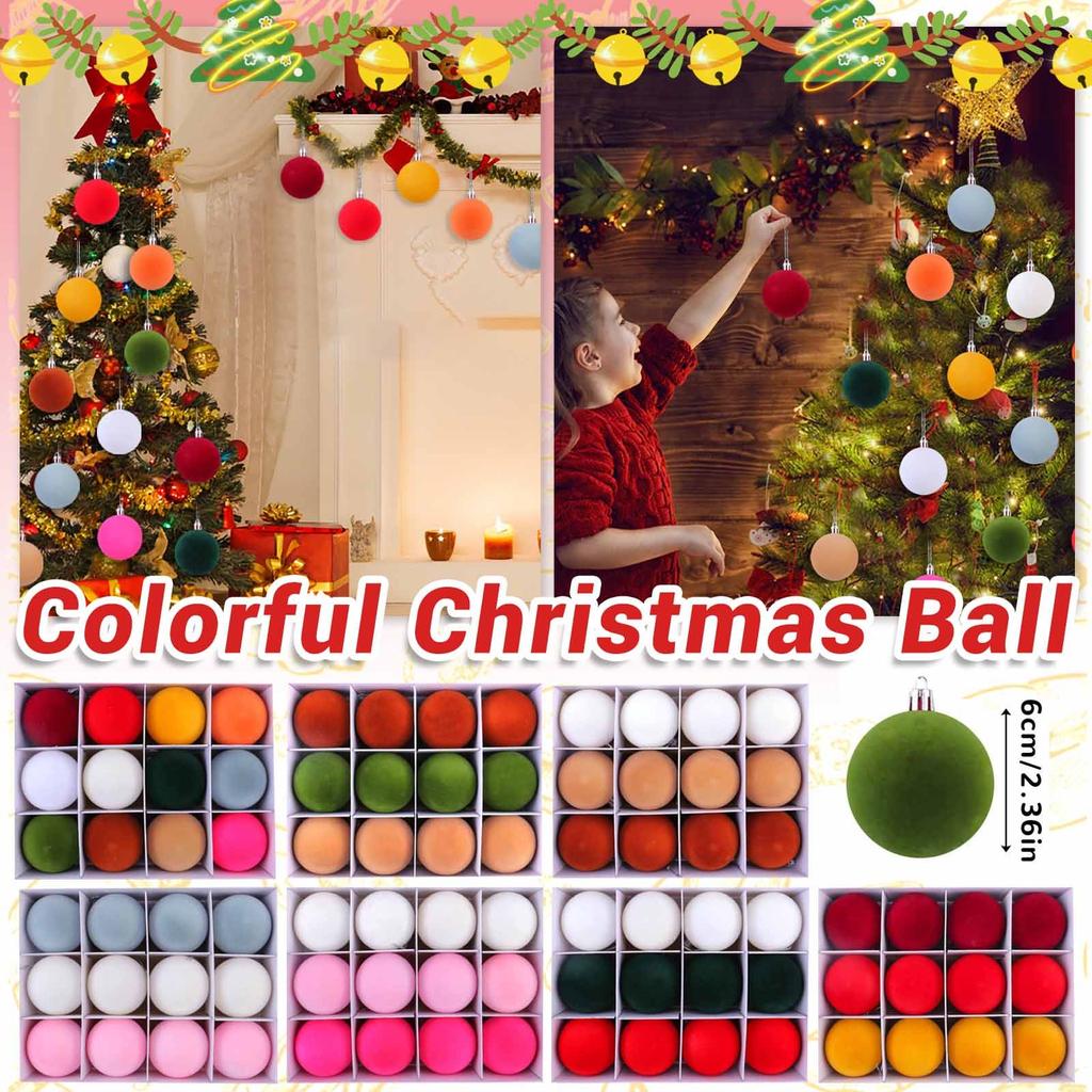 Красочные флокированные рождественские шары, украшения своими руками, плюшевые круглые шары, упакованные в коробку, украшения для рождественской елки, подвесные шары, аксессуары