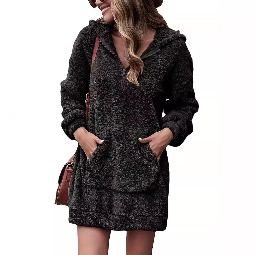 Осенне-зимняя женская толстовка с капюшоном большого размера с застежкой-молнией, двухсторонняя, бархатная, с капюшоном, свободная толстовка