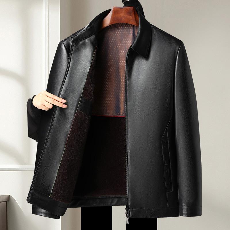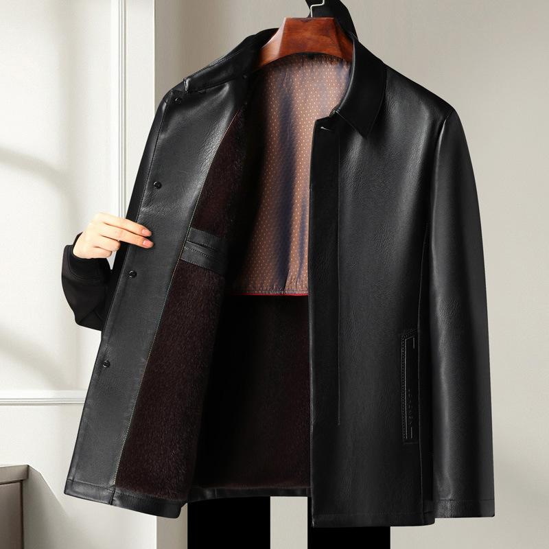 Осень и зима Новое бархатное пальто среднего возраста для деловых людей, теплое кожаное, повседневное, утолщенное