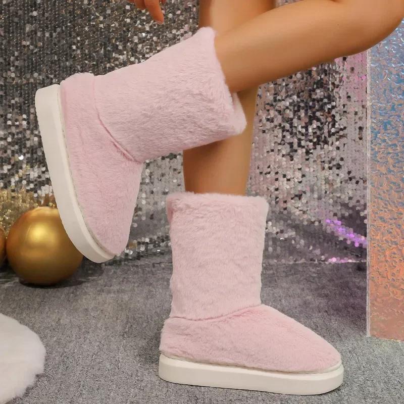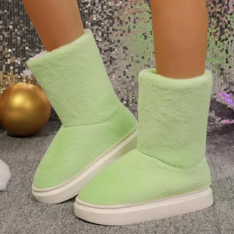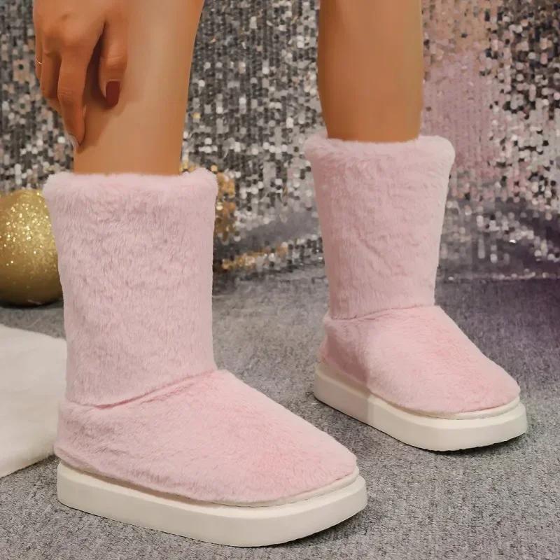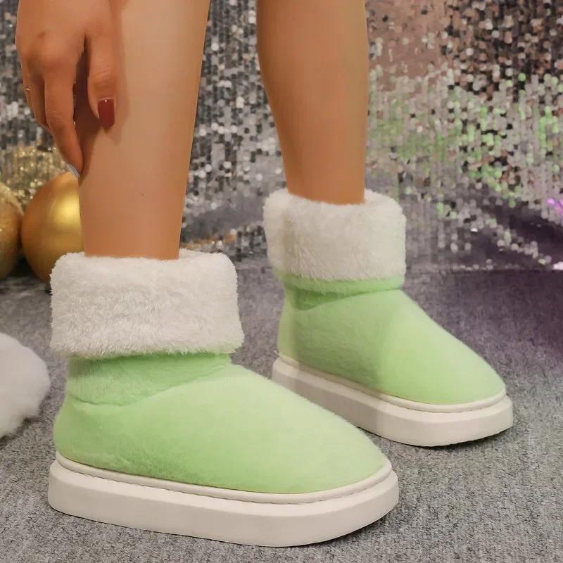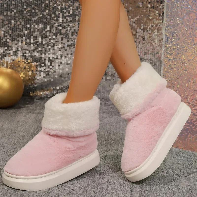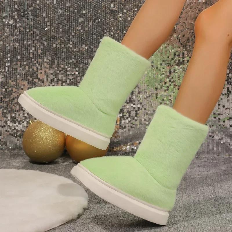 Обувь для женщин Зимние женские сапоги с круглым носком из цельного флоксового плюша Теплые Водонепроницаемые повседневные зимние сапоги для женщин