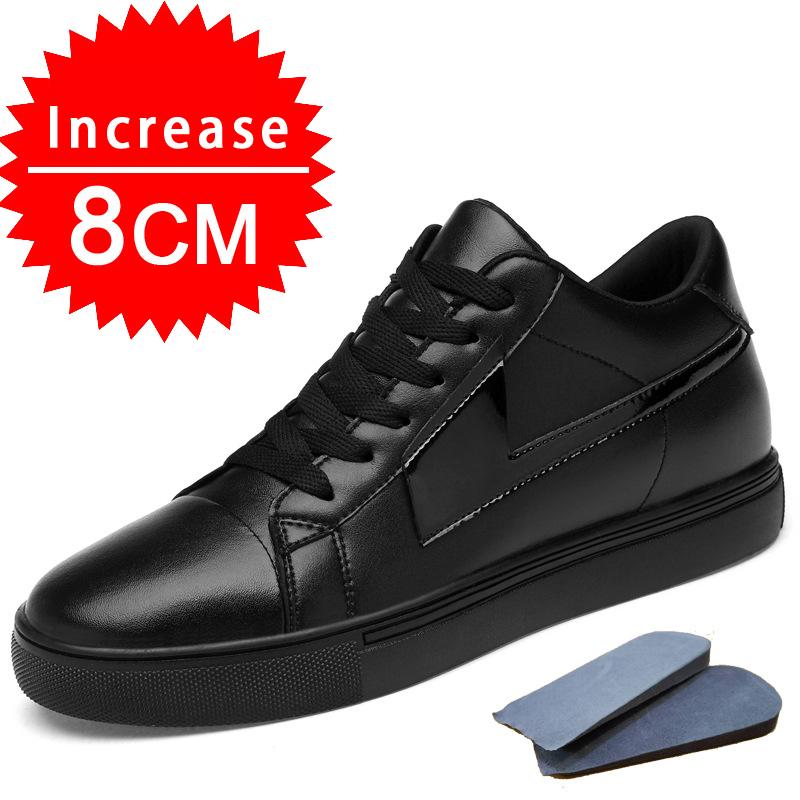 Кроссовки мужские, увеличивающие рост, стелька 8 см, белые, черные, высокие, мужские, для отдыха, модные, кожаные, спортивные, размер плюс 44