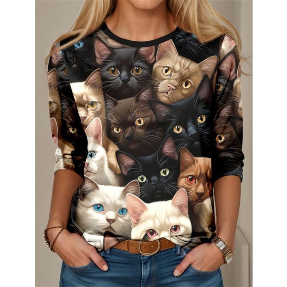 Модные женские футболки с 3D-принтом, кавайными рисунками кошек, длинными рукавами, круглым вырезом, стандартным кроем, весна/осень, тонкий стиль, спортивная одежда — купить товар онлайн с бесплатной доставкой по всему миру!