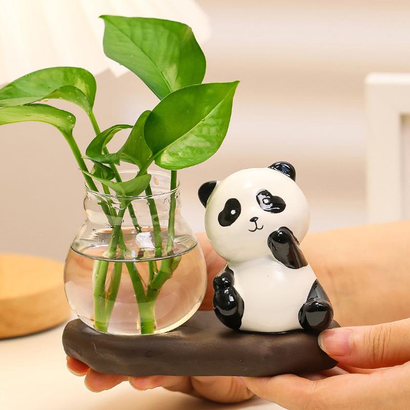 Мультфильм Панда Зеленая Роза Гидропонная Ваза Стеклянная Посуда Прозрачная Вода Питательные Свежие Цветы Цветочный Горшок Цветочная Посуда Настольное Украшение
