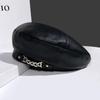 Женская мода винтаж элегантный металлическая цепочка кожа восьмиугольный берет дамы винтажные однотонные береты
