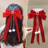 Новогодняя красная блестящая бархатная заколка-бантик для волос на Рождество, благоприятная лента-бантик для волос, женские аксессуары для волос для девочек