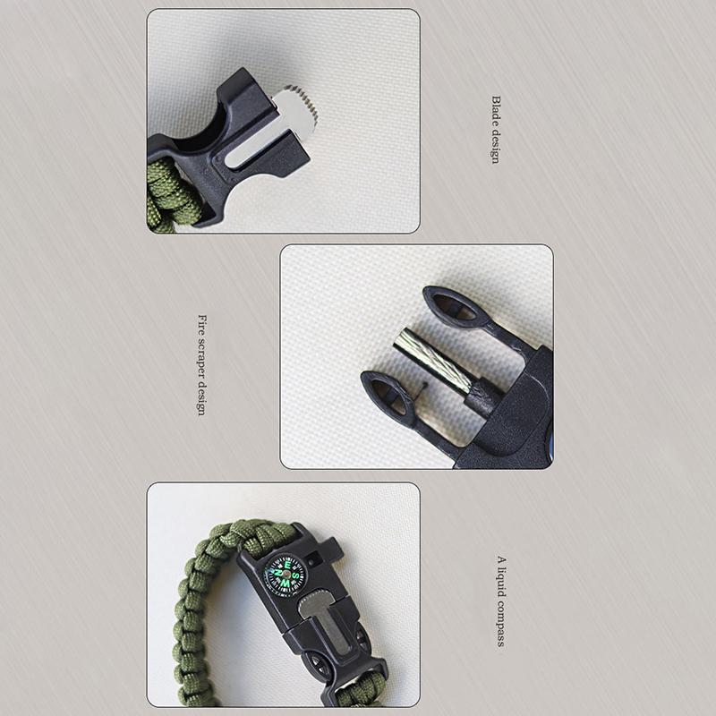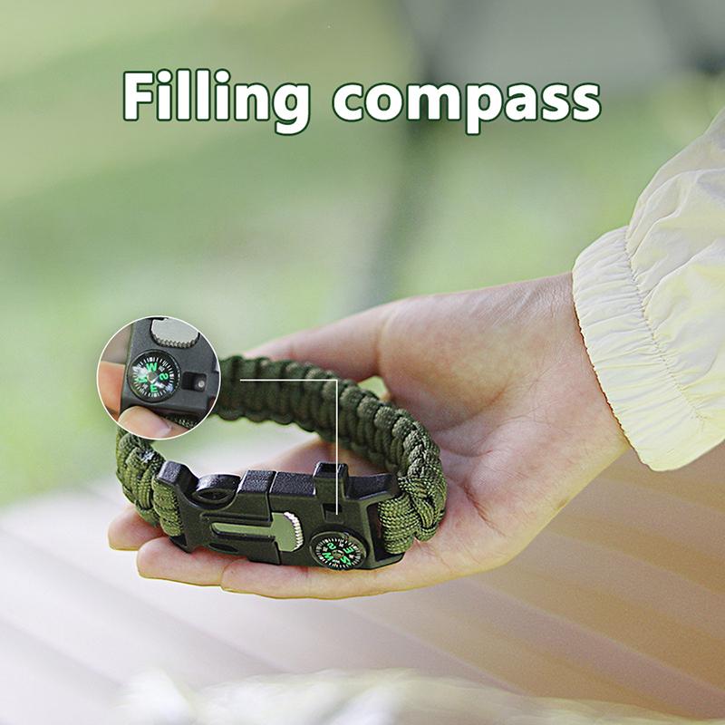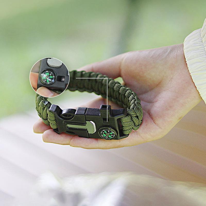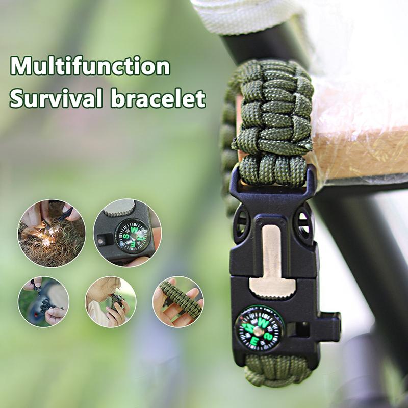 5 в 1 Паракордовый браслет для выживания на открытом воздухе, многофункциональные походные спасательные браслеты, компас, пожарный стержень, свисток, скребок из паракорда