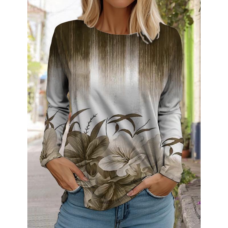 2024 женские модные топы с длинным рукавом и круглым вырезом, повседневная футболка с длинным рукавом, новый 3D-принт с полосатым градиентным цветочным принтом