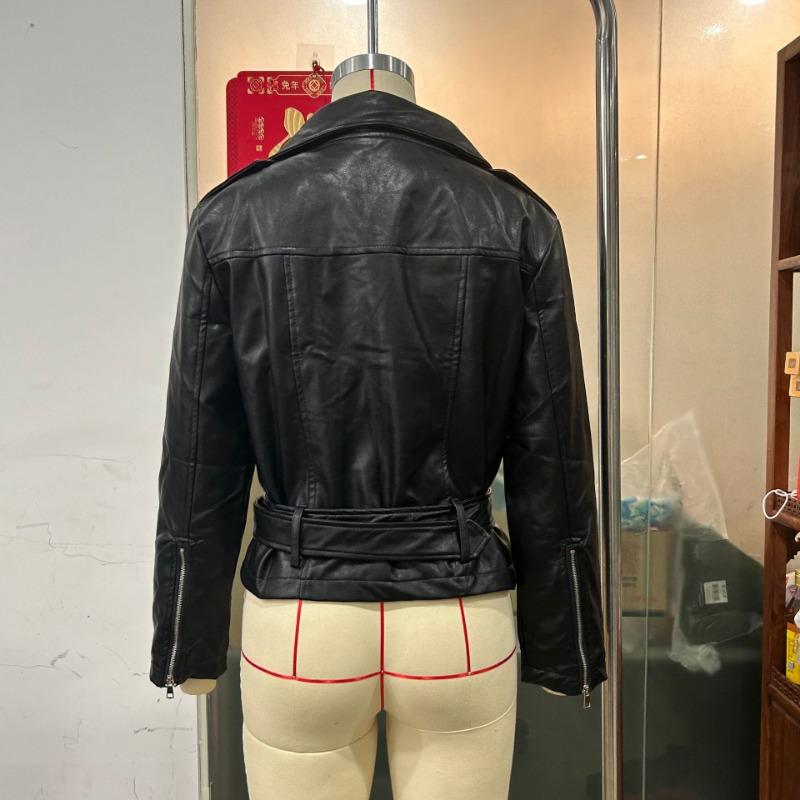 Женская однотонная кожаная куртка осень-зима в стиле панк с коротким поясом и отложным воротником, женская куртка на молнии в стиле ретро в байкерском стиле