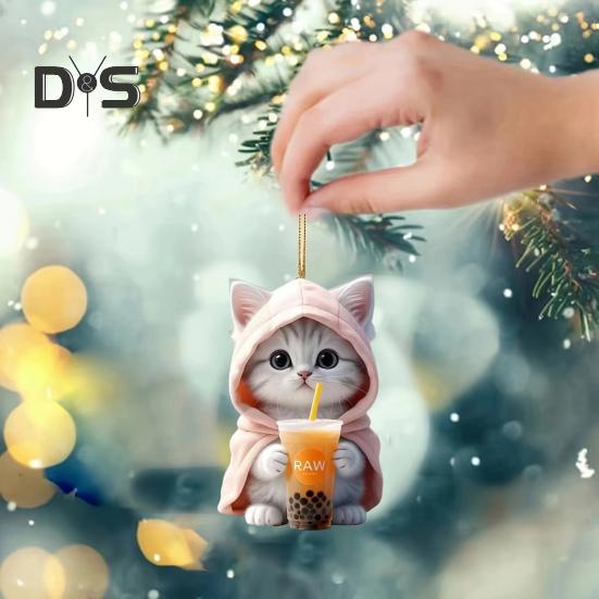 Добавьте нотку причудливости и очарования в любое пространство с помощью этой очаровательной подвески в виде кошки.. Кот, держащий чашку молочного чая, прекрасно детализирован, создавая стильный и современный дизайн, излучающий изысканность..