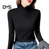 Женские топы с высоким воротником и длинным рукавом, облегающие, мягкие, эластичные, однотонные, с уникальным вырезом горловины