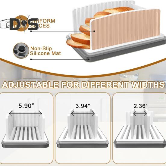 Руководство по нарезке хлеба: Вы можете отрегулировать ширину в соответствии с размером вашего хлеба.. Используйте руководство по нарезке хлеба, чтобы нарезать хлеб на ломтики стандартной одинаковой толщины в 1,2 сантиметра, полностью разрезая его до основания.. Этот регулируемый прибор идеально подходит для домашнего хлеба, рогаликов, тортов, хлеба на закваске и многого другого.