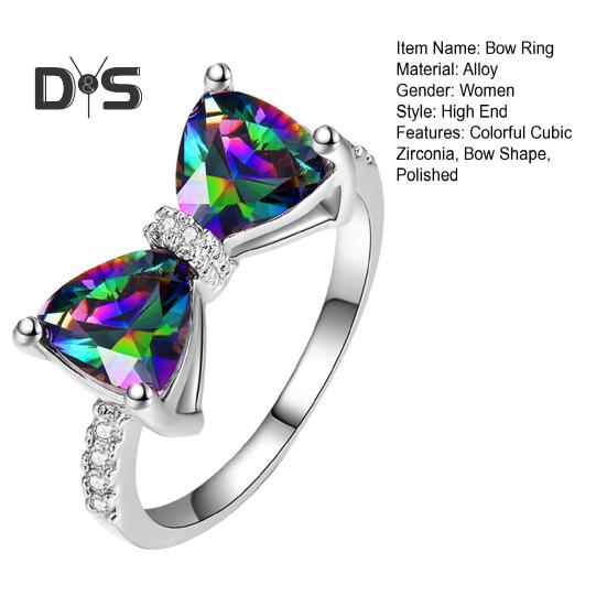 Дополните свой стиль нашим изысканным кольцом-бантом, изготовленным из высококачественного сплава, обеспечивающего красоту и долговечность.. Контрастный цветовой дизайн и разноцветные ограненные кубические цирконии добавляют нотку элегантности, что делает его идеальным для сочетания с платьями или повседневными топами..