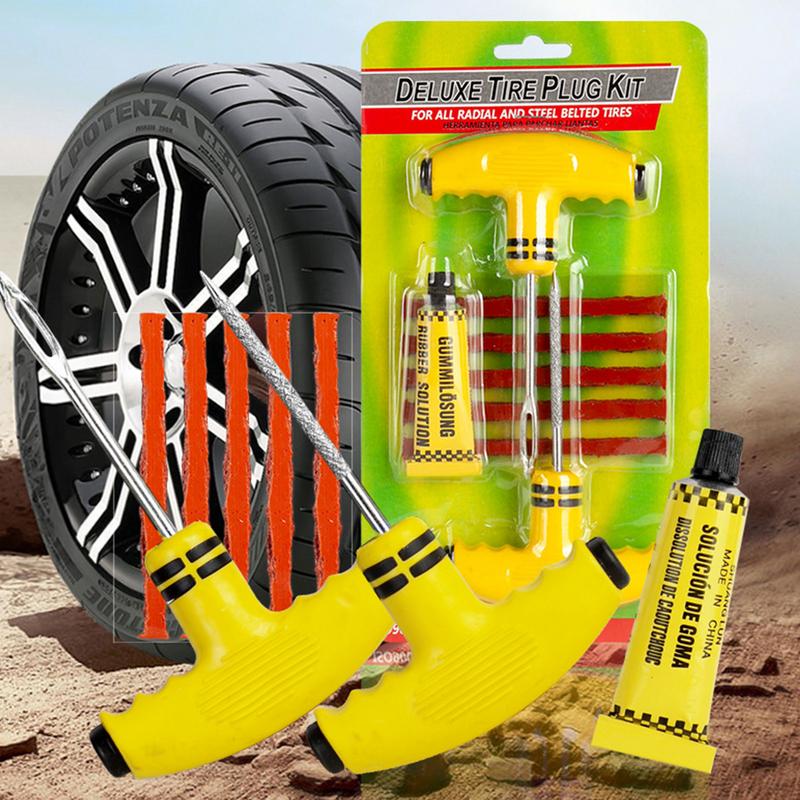 1 комплект наборов для ремонта проколов, инструмент для ремонта автомобильных шин с резиновыми полосками, инструмент для ремонта бескамерных спущенных шин для двигателей автомобилей, грузовиков