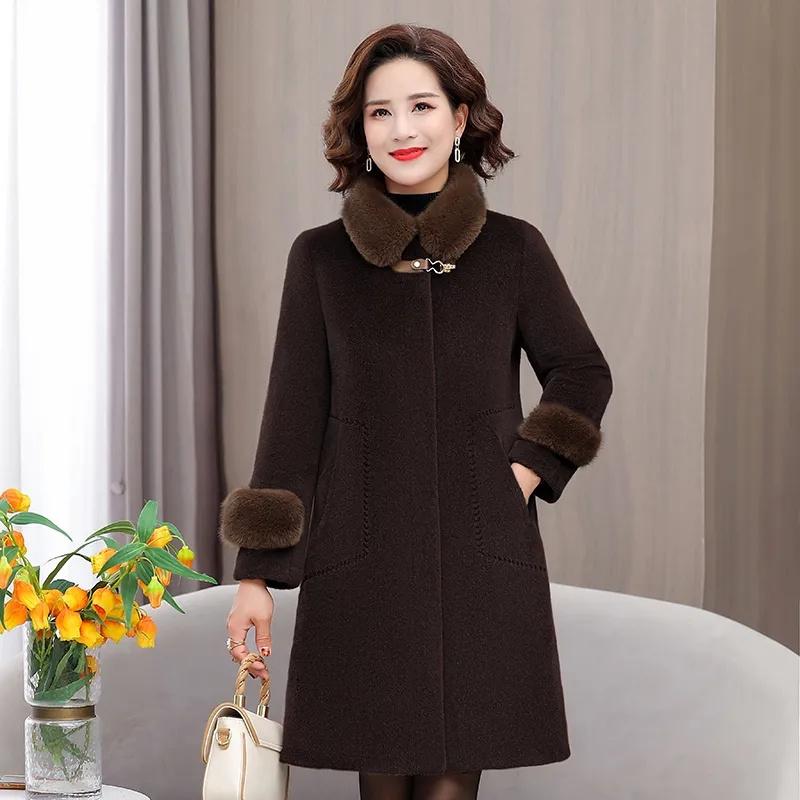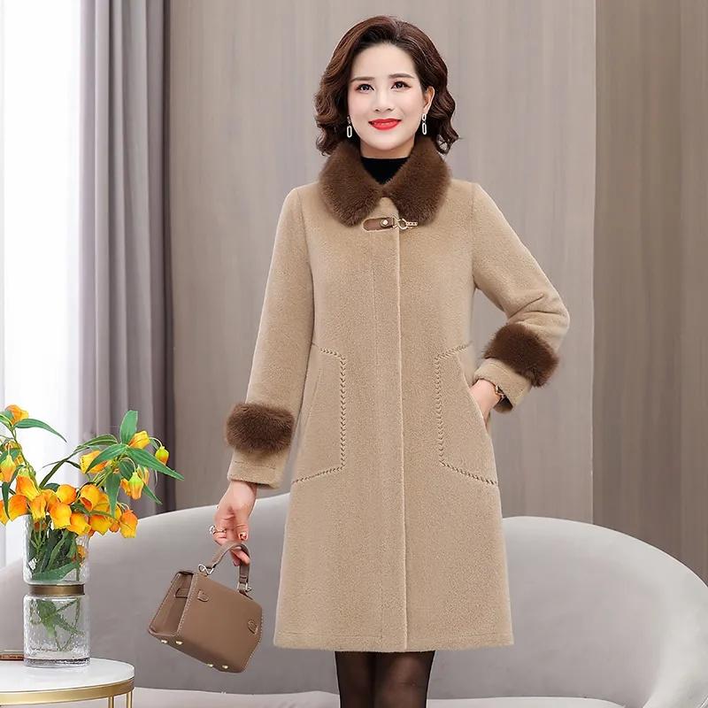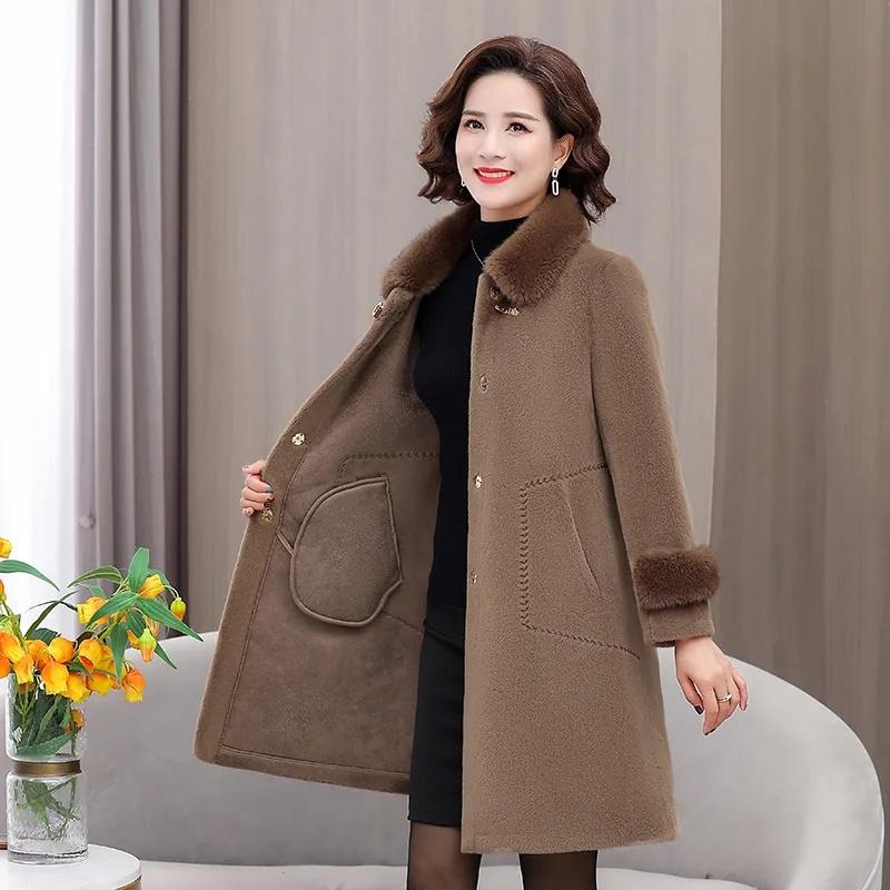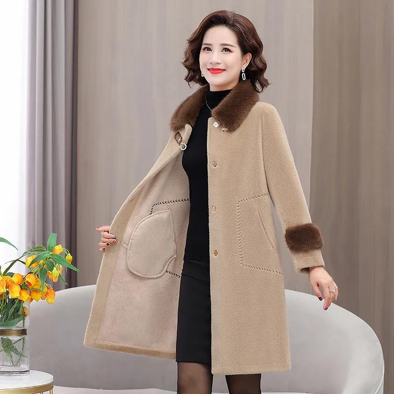 Верхняя одежда для женщин среднего возраста и пожилых женщин, зимняя норковая шуба, осенне-зимняя шерстяная куртка для мам, утолщенная шуба из меха для женщин, топ Tide