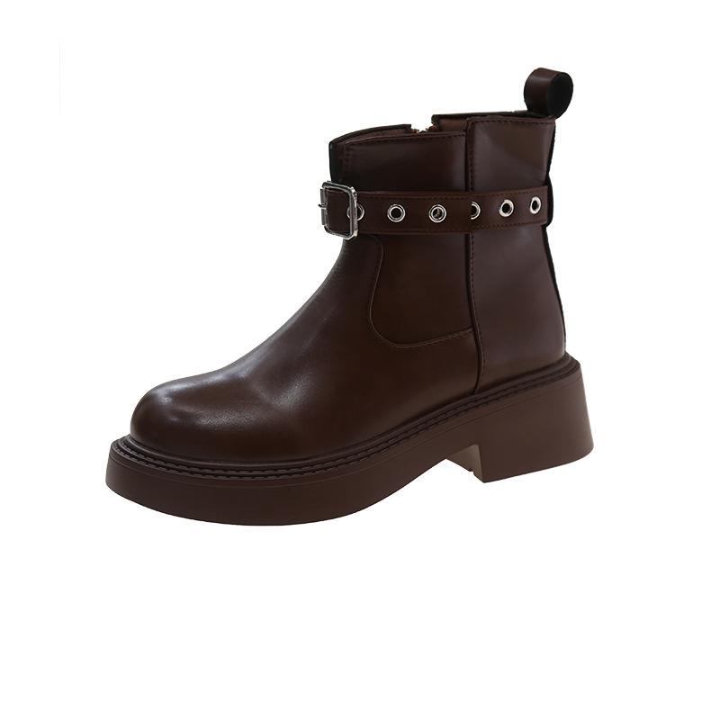 Британский стиль платформа боковая молния Botas Mujer 2024 осень новый ретро толстый каблук ремень пряжка короткие сапоги вестерн повседневная женская обувь