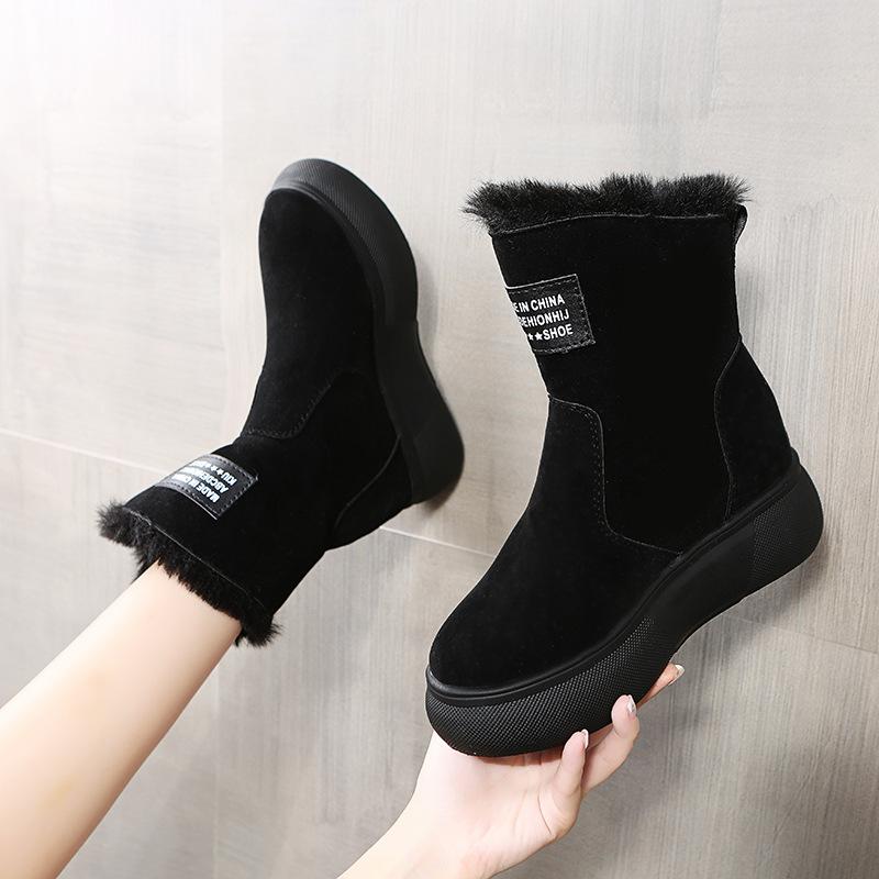 Короткие ботинки на толстой подошве, популярные для женщин зимой, новые плюшевые теплые зимние ботинки с круглым носком, утепленные корейские хлопковые туфли