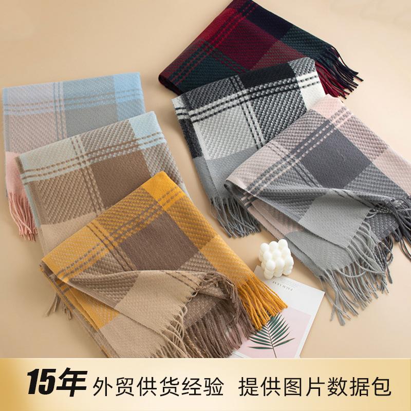 Клетчатый шарф для девушек с чувством роскоши и утолщенной теплой шеей