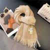 Земляной цвет, базовый однотонный большой шарф с кисточками, темперамент, утолщенная теплая шаль, мягкая клейкая шея