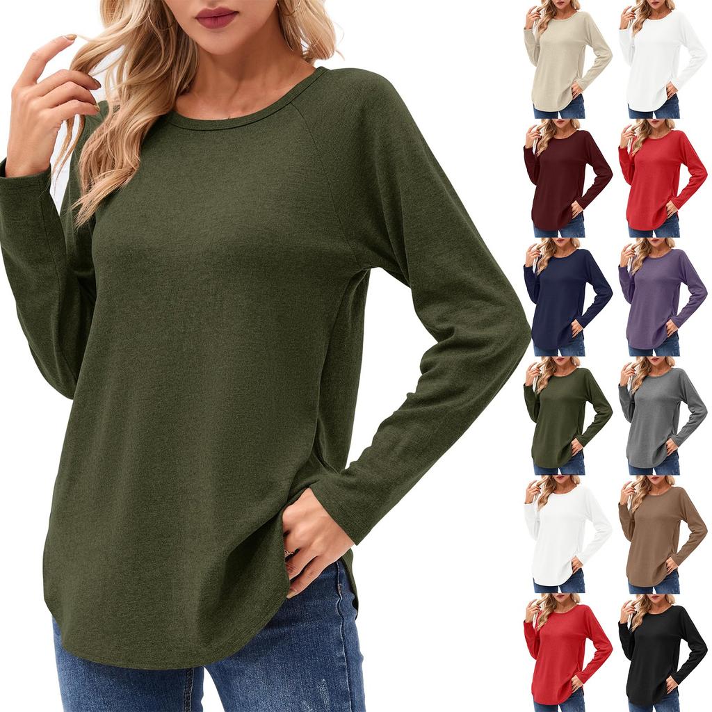 Женские рубашки с длинным рукавом осень-зима повседневная мода туника топы с круглым вырезом базовая свободная футболка — купить товар онлайн с бесплатной доставкой по всему миру!