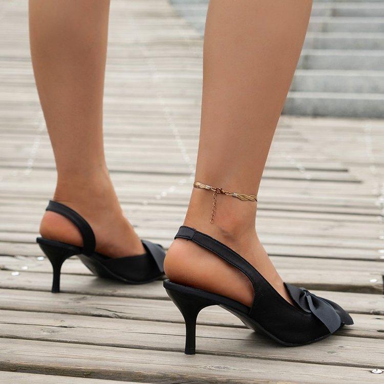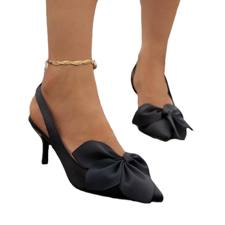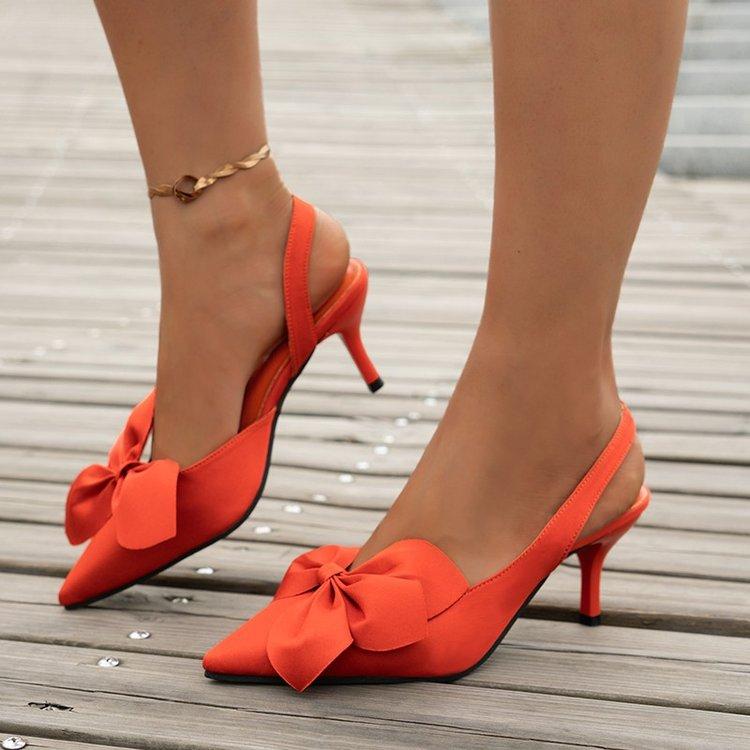 Новые женские туфли с острым носком, оранжевые туфли с бантом и модными сексуальными однотонными банкетными туфлями на высоком каблуке с бантом