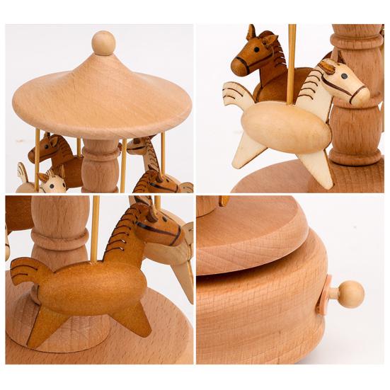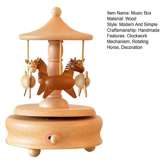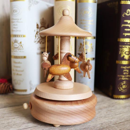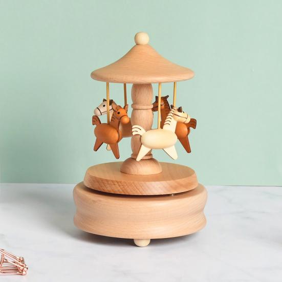 Почувствуйте очарование и изысканность нашей деревянной музыкальной шкатулки-карусели, идеального сочетания ностальгии и элегантности, которое принесет радость в любой случай.