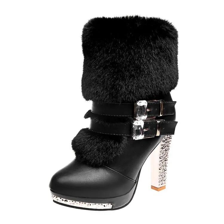 Короткие сапоги на высоком каблуке со стразами для женщин, толстые, с короткой круглой головкой, молнией сбоку, супер высокие, с модными праздничными сапогами для женщин