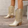 2024 Новые классические женские винтажные ковбойские сапоги с золотой бахромой для женщин, туфли на квадратном каблуке, концертные вестерн-сапоги для женщин
