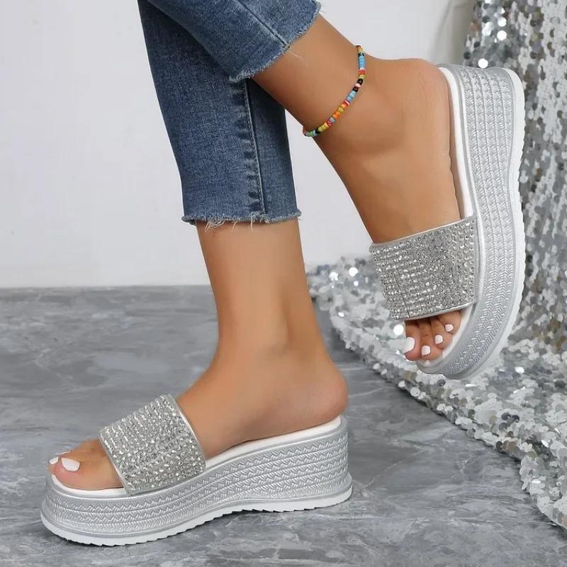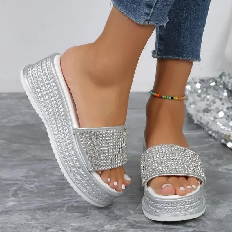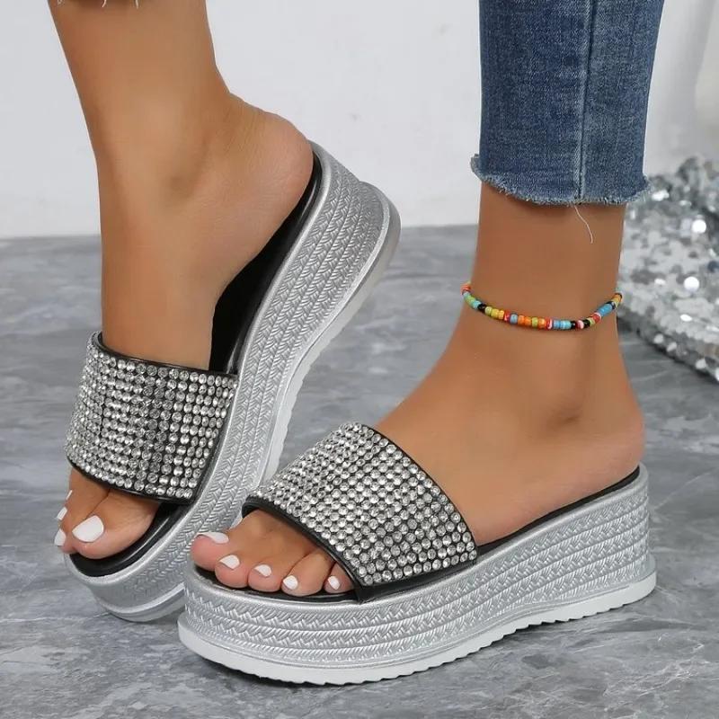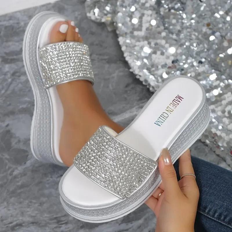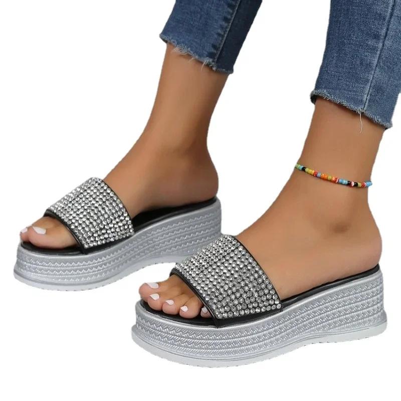 Тапочки со стразами, женская летняя обувь, женская модная пляжная обувь, дизайнерские шлепанцы, женские повседневные удобные шлепанцы на платформе