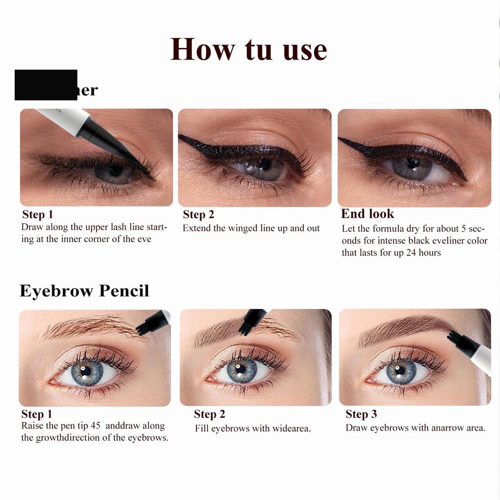 Водостойкая жидкая двухсторонняя подводка для глаз, карандаш для бровей, стойкая к размазыванию, черная подводка для бровей, 3 когтя