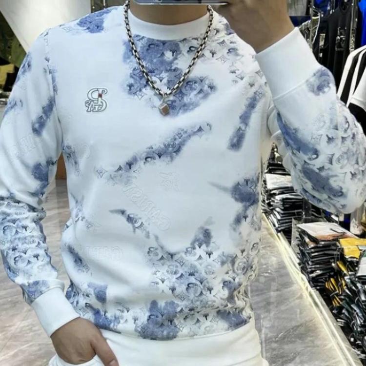 Модные роскошные осенне-зимние новые мужские толстовки с круглым вырезом и принтом контрастного цвета в корейском стиле HighStreet с длинным рукавом, топы
