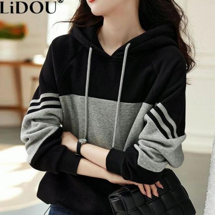 Осень-зима, свободные повседневные лоскутные толстовки, женские простые модные универсальные пуловеры, топ, женская толстовка с капюшоном, женская одежда