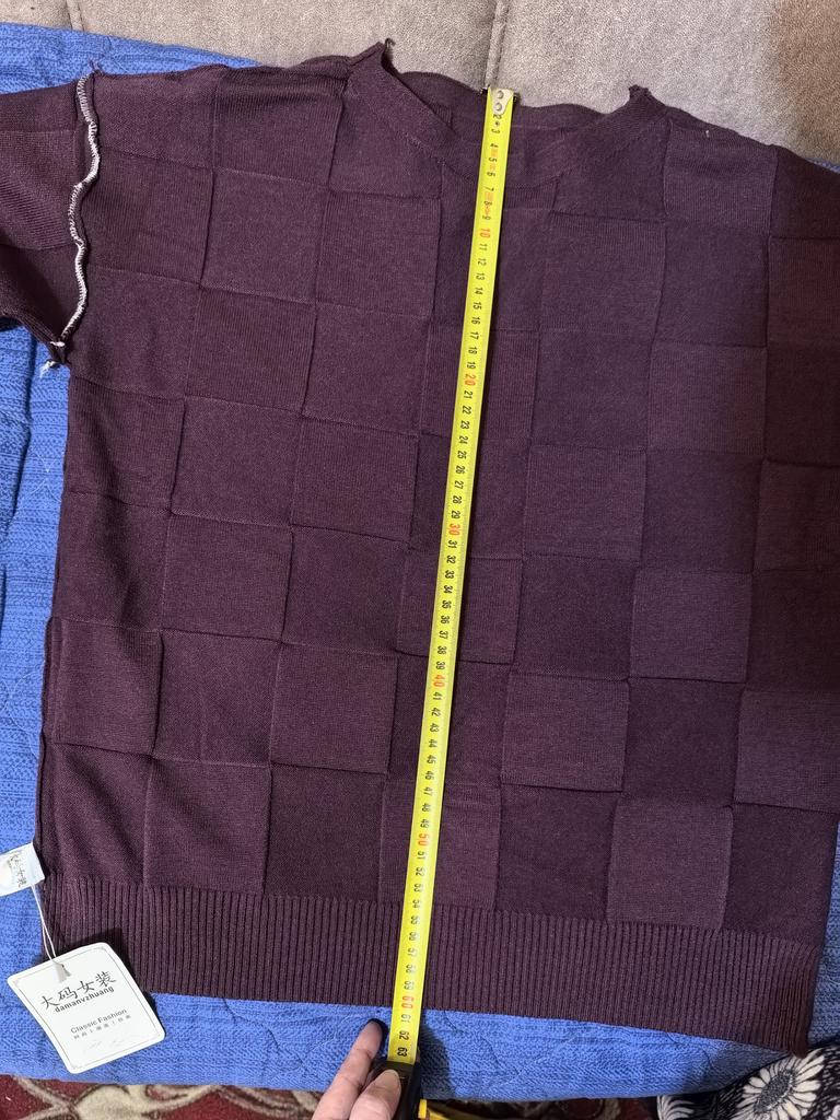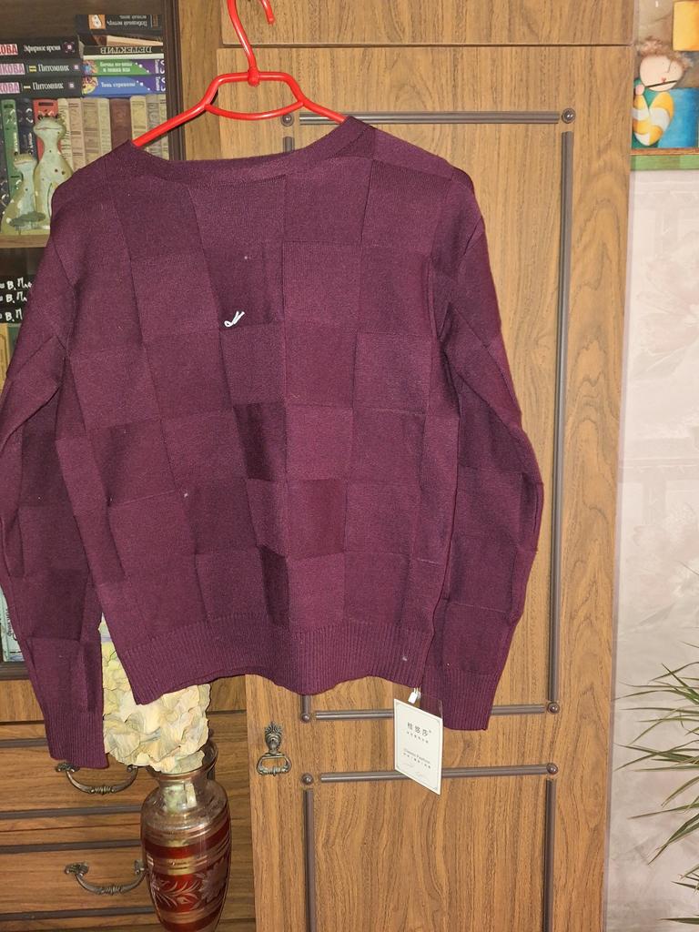 На самом джемпере никаких обозначений размера не пришито, только на пакете наклейка 5 хл. Заявлено ОГ от 116 см, на самом деле 108. Длина на 2 см короче. Соответственно джемпер мне мал! Швы обработаны ужасно, повсюду торчат нитки, и затяжка присутствует😏 так-то кофтейка мягонькая, приятна к телу, и цвет глубокий, красивый. Носила бы с удовольствием, будь он по размеру. Брала за 1189 рублей.