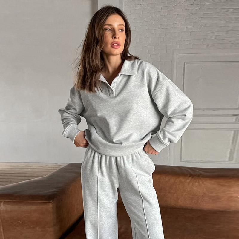 Женская свободная повседневная толстовка с капюшоном, спортивная одежда, комплект из 2 предметов, осенняя толстовка с длинным рукавом и лацканами, спортивные штаны для бега на шнурке
