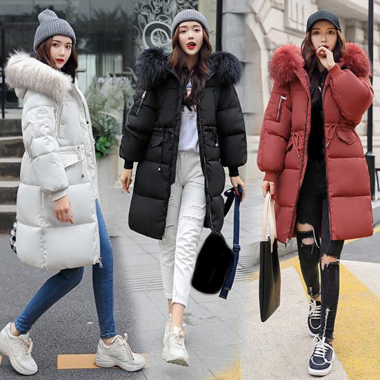 Универсальный стиль: Оцените классический и универсальный дизайн этой однотонной хлопковой куртки средней длины с двойными карманами, капюшоном, меховым воротником и застежкой-молнией для создания вневременного, но модного образа.