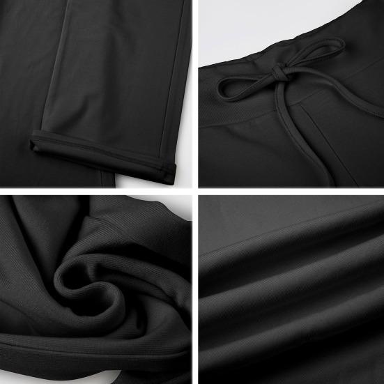 Мягкая и эластичная ткань: Мягкая и эластичная ткань, изготовленная из полиэфирного волокна, обеспечивает комфорт и гибкость, что делает эти брюки идеальными для различных случаев.