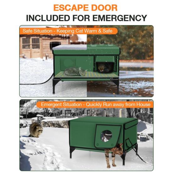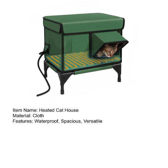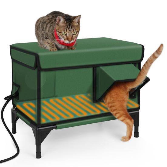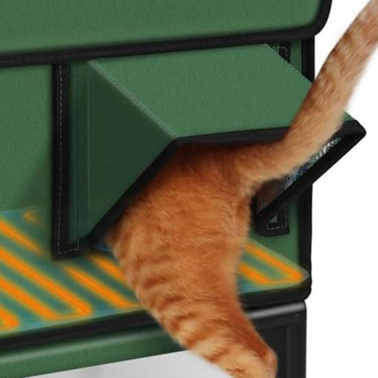Инновационный дизайн кошачьего домика: Наш отапливаемый кошачий домик с большой дверью, двумя сетчатыми окнами и сменным чехлом из дышащей сетки и ткани «Оксфорд» способствует лучшему наблюдению и снижает беспокойство кошек.. Конструкция гарантирует вашему питомцу прохладу летом и тепло зимой.