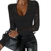 Осень-весна женский топ с вырезом из кружева с цветочной вышивкой, однотонный однотонный топ с v-образным вырезом и длинным рукавом, облегающий лоскутный мягкий женский сексуальный топ