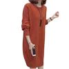 Женское платье-свитер с круглым вырезом, вязаное однотонное свободное эластичное платье с длинными рукавами и толстым теплым пуловером длиной до середины икры, женское осеннее платье миди