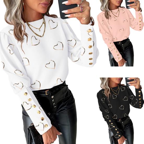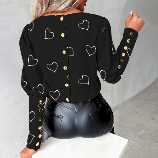Принт в виде сердца, круглый вырез, украшение на пуговицы для модного образа.