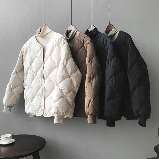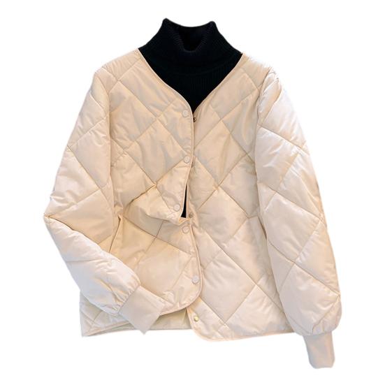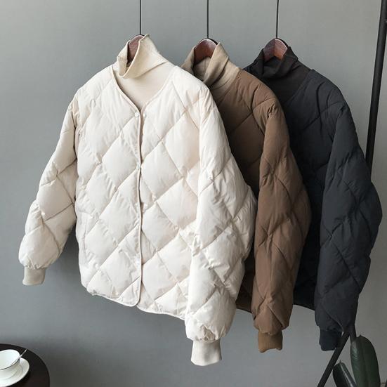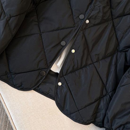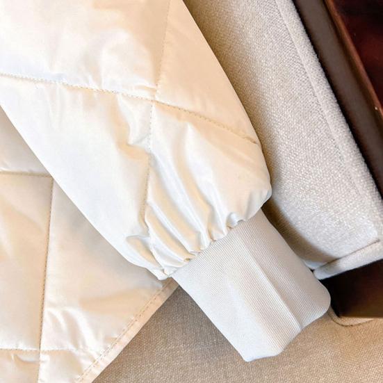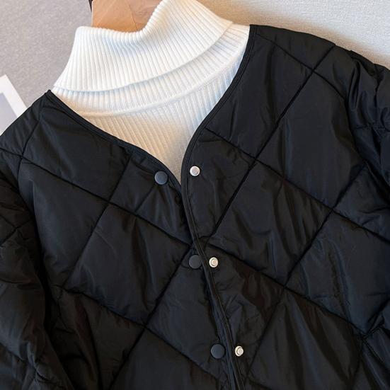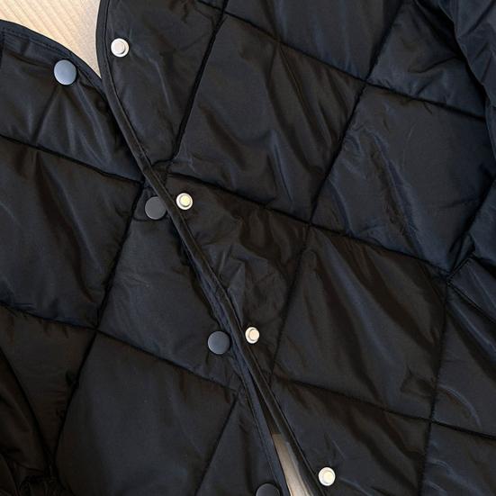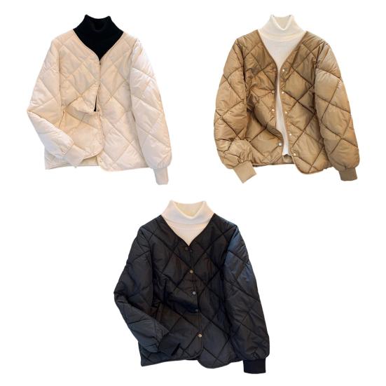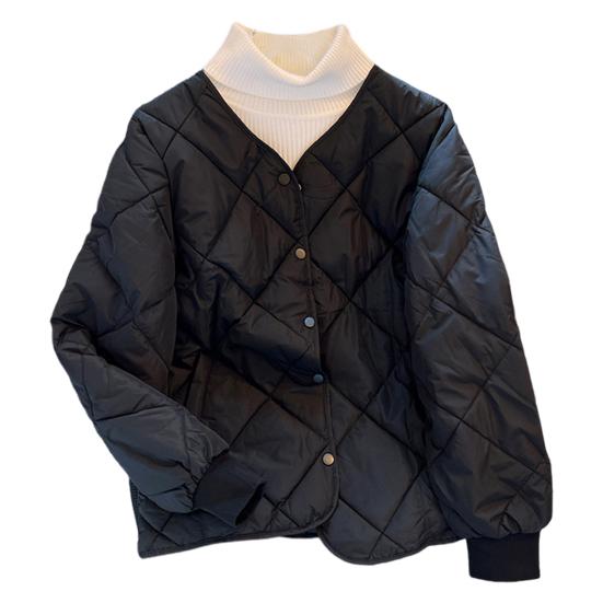 Функциональный дизайн: Эта куртка с хлопковой подкладкой, V-образным вырезом, длинными рукавами и свободным кроем обеспечивает комфорт и стиль, а клетчатый узор в форме ромба добавляет нотку изысканности.