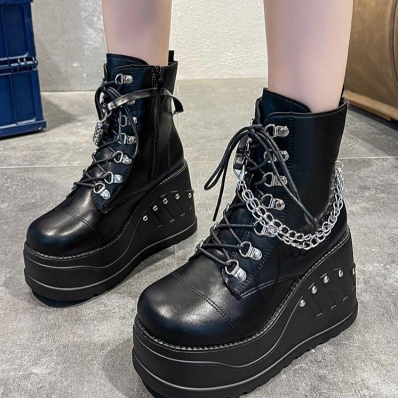 2024 Новые сапоги для женщин, мода, горячая распродажа, панк-гот, платформа, каблуки, танкетка, женские сапоги, повседневная готическая панк-обувь, размер 43, женская обувь
