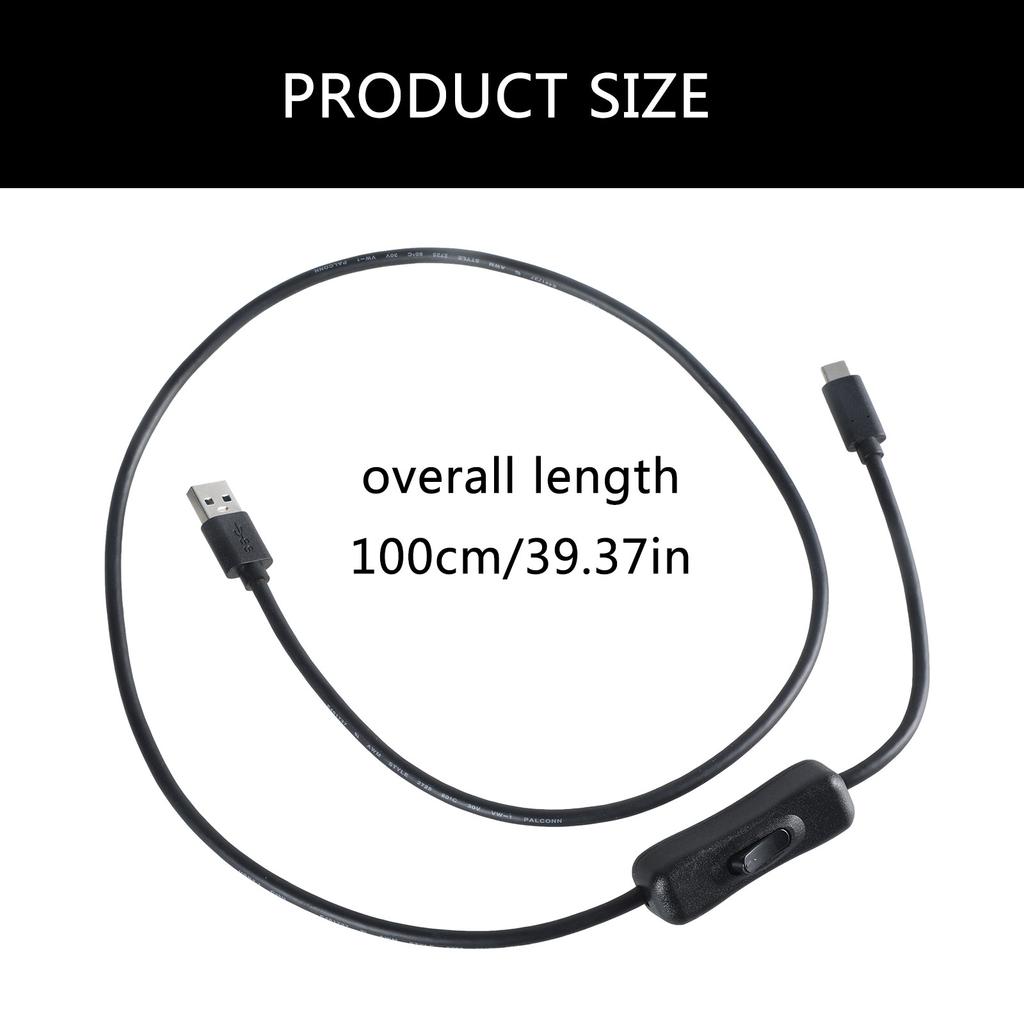 Кабель-удлинитель USB A на Type C длиной 100 см с кнопкой переключения питания, шнур для передачи данных и зарядки для светодиодной ленты, вентилятора, лампы