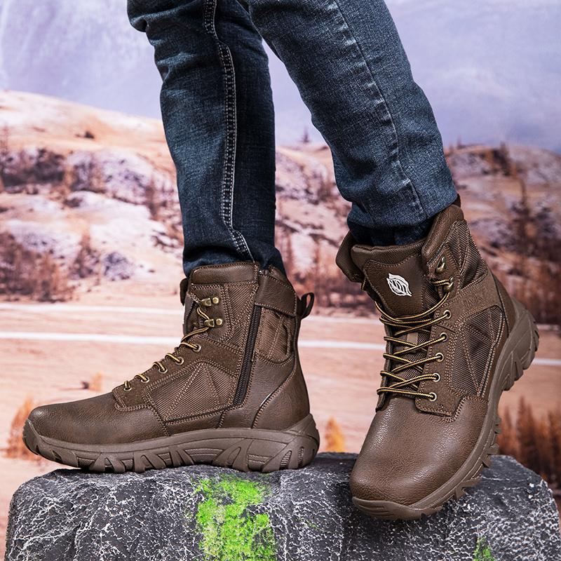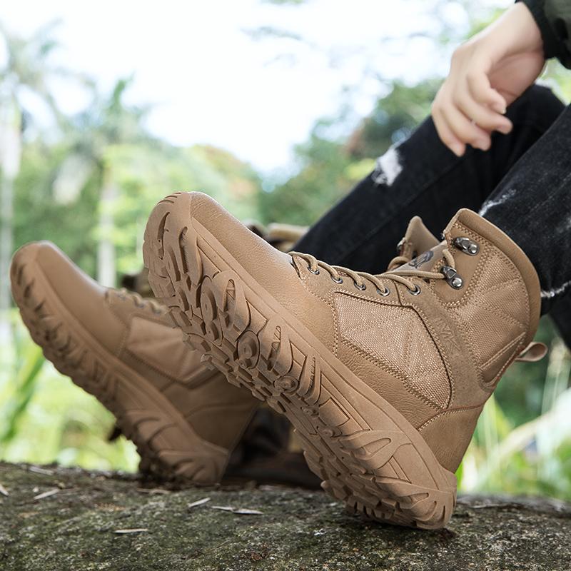 Брендовые высокие кожаные мужские ботинки, дышащие, пустынные, боевые, мужские, рабочие, до щиколотки, нескользящие, походные ботинки, мужские мотоциклетные ботинки