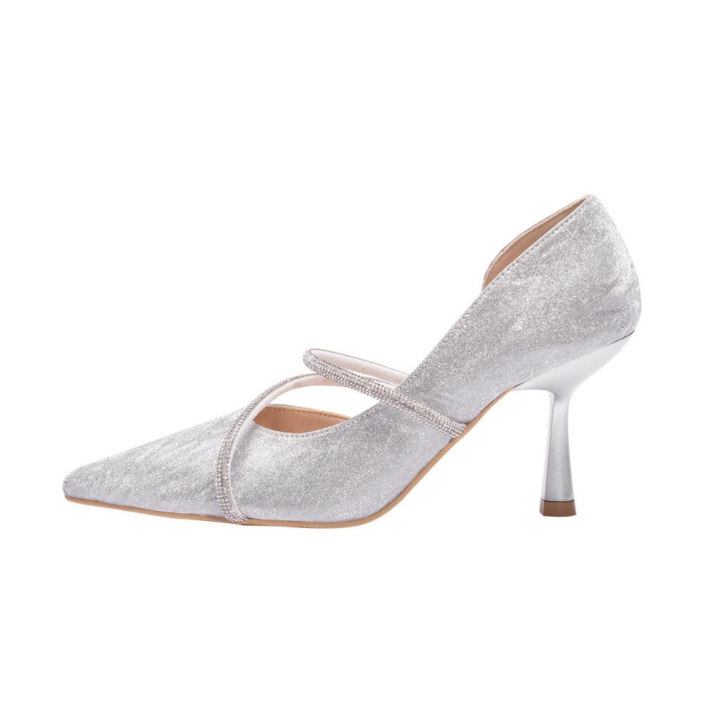 Туфли-лодочки женские туфли блестящие серебристые боковые полые высокие каблуки новые женские туфли с бриллиантами из воды остроконечные свадебные туфли невесты тонкие каблуки