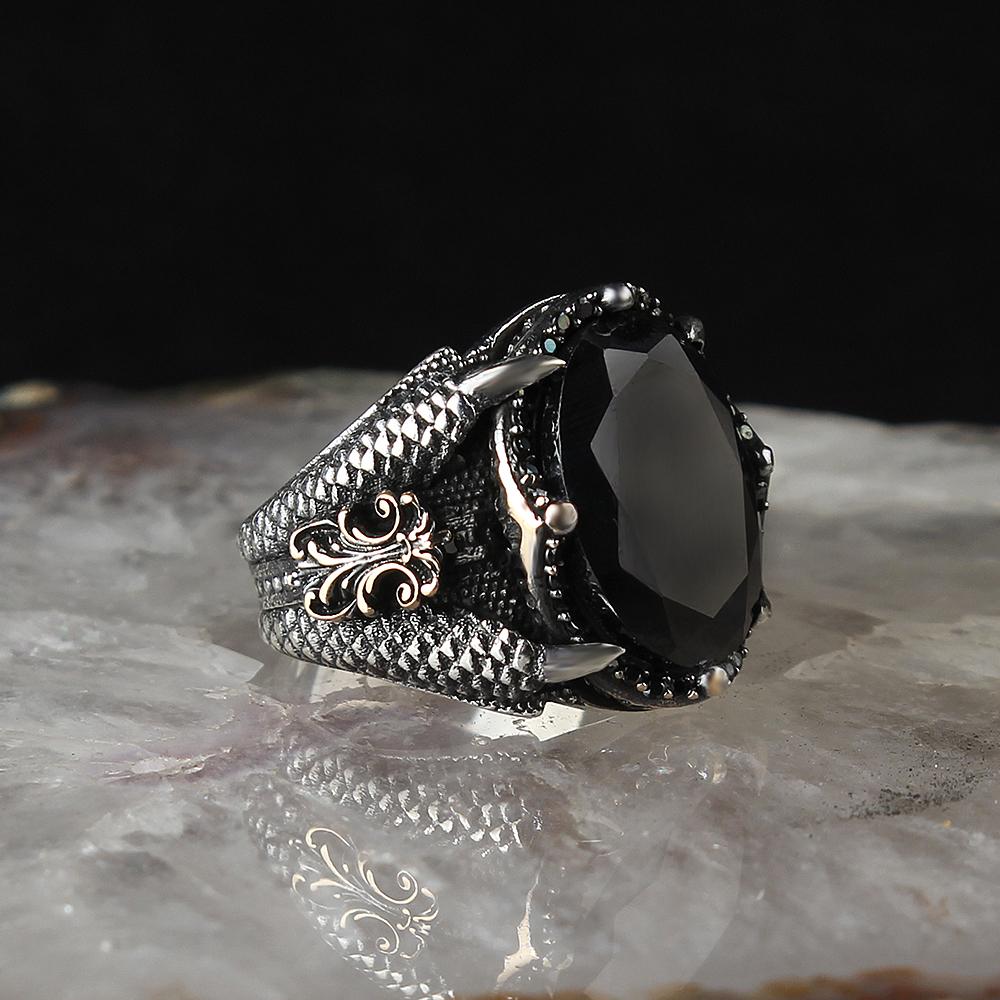 Мужское кольцо Kristal Kesim Siyah Zirkon Kartal Pençesi Taşlı из стерлингового серебра 925 пробы