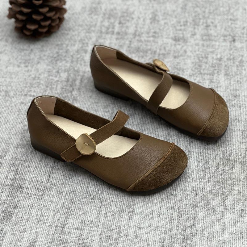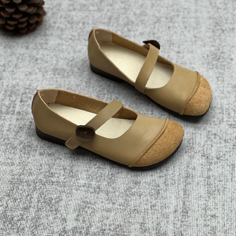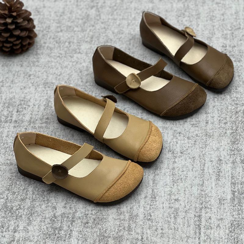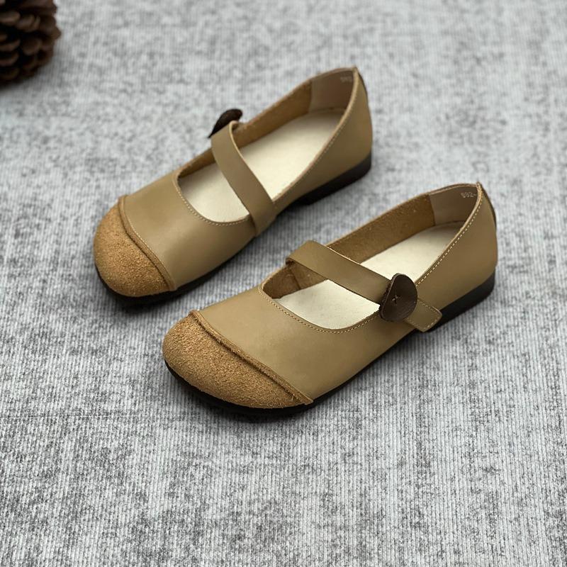 Туфли из натуральной кожи ручной работы на плоской подошве с круглым носком и мягкой воловьей кожей